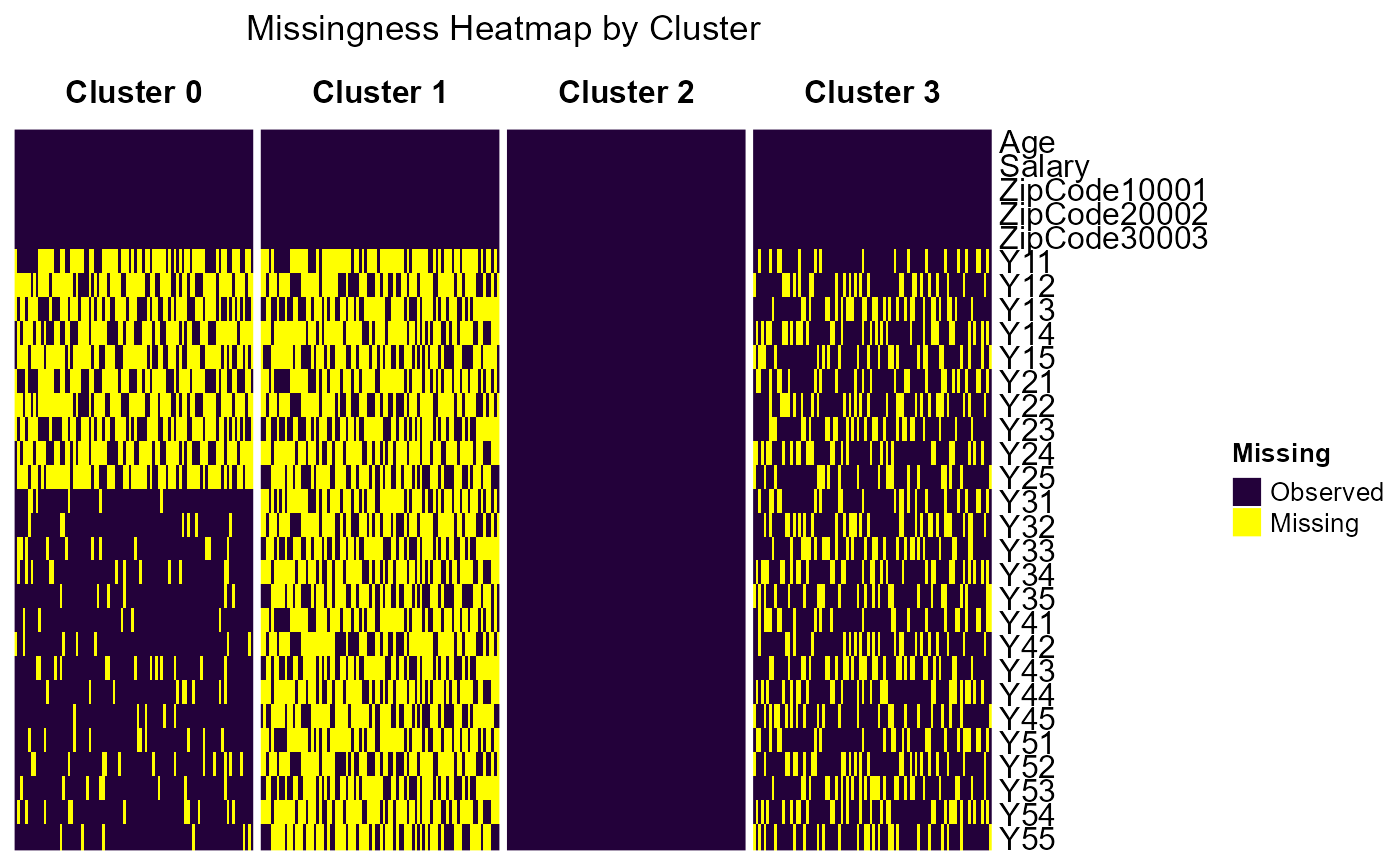 table stratified by missingness cluster. The function builds on